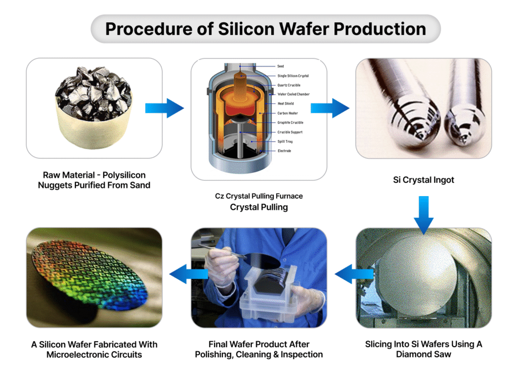 Polysilicon nuggets are converted into Silicon Crystals
